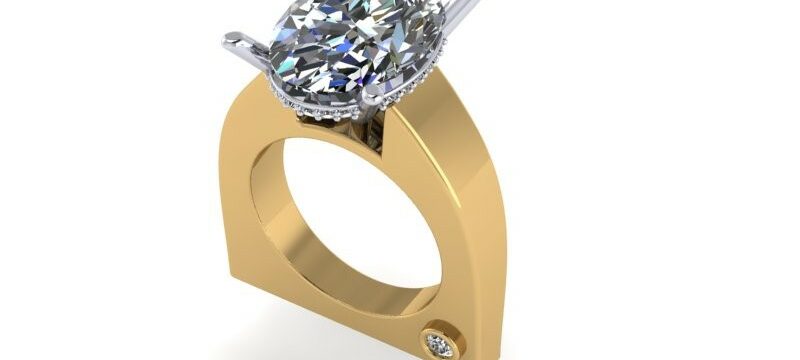 Our client wanted a Euro shank band with some width to make it unique but only wide enough that the center stone would still stand out. Our artisan jewelers suggested the hidden, under-halo detail and the bezel set diamonds in each corner which she loved and decided to include in the design.