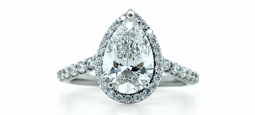 Out client came to us wanting to create a special custom engagement ring for his future fiance. He chose a pear diamond engagement ring and we got started by sending him the picture renders you see above.
