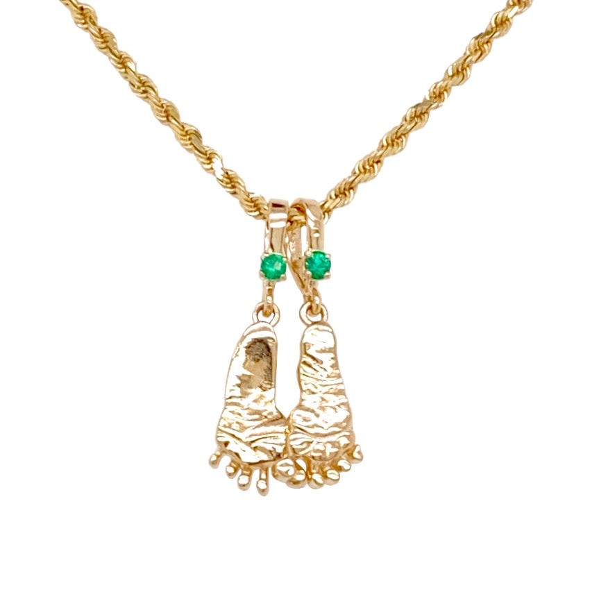 Custom 14K Gold Baby Feet & Birthstone Charms for Gem Gossip