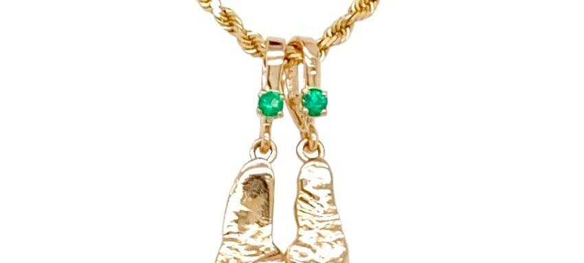 After final client approval, two stunning 14k gold custom charms with emerald birthstones were created to be placed on a necklace!