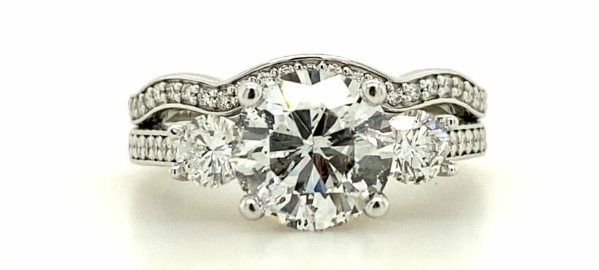 Our client inherited some family heirloom rings from her grandmother and wanted to turn them into something she would wear. She used them to upgrade her engagement and wedding rings and to make a new diamond necklace and earring set.